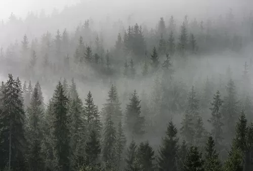 Здесь вы найдете изображения хвойного леса, где ели и сосны восхитительно сливаются с магией тумана. Норвежский лес и его очарование ожидают вас в этой коллекции.
